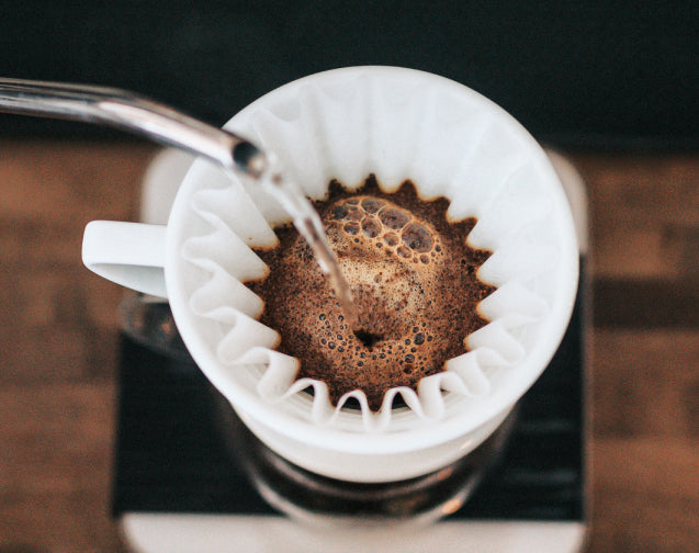 - Use a container with a spout and slowly pour the hot water on the coffee inside the filter, a nice foam should start forming on the top